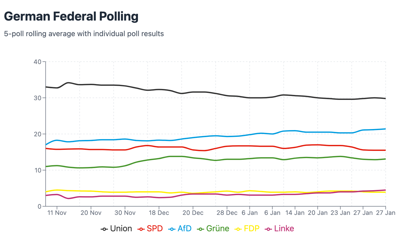 The Christian Democrats (CDU) lead in voting intentions; whatever configuration the next government takes, it will almost certainly be CDU candidate Friedrich Merz who takes the Chancellery. But Germany's electoral system means he can't govern alone. The far-right AfD has surged to second, while Scholz's Social Democrats (SPD) have plummeted to third place. The libertarian Free Democrats face complete ejection from the Bundestag. Only the Greens have maintained their 2021 position among mainstream parties, while the BSW promises the far left's best result in decades.