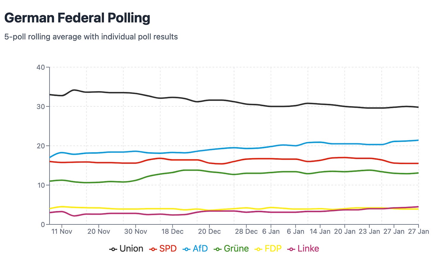 I think the real at next month’s election isn't whether Merz can form a stable coalition or whether the AfD can be contained. It's whether Germany's next government will finally break with the consensus politics that created this mess. That means no return to a grand coalition with the SPD. It means letting failed firms fail instead of protecting them with subsidies. Above all, it means accepting that some interests will lose out in necessary reforms.